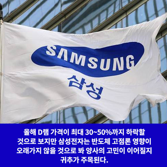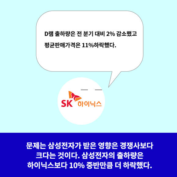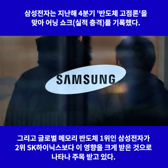 [카드뉴스] 삼성전자 '반도체 고점론' 직격타…"SK하이닉스 比 영향 컸다"