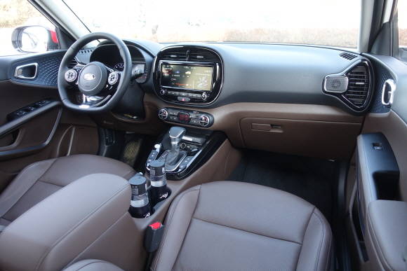 또 대시보드 양 끝에 일체형으로 디자인된 송풍구와 스피커, 변속기 손잡이 좌측에 위치한 엔진 스타트 버튼 등은 기존 쏘울의 정체성을 감각적인 이미지로 재해석했다.