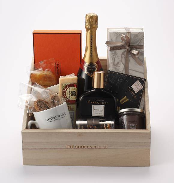 서울 웨스틴조선호텔에서 선보이는 이번 햄퍼에는 △1884년 빅토리와 여왕 이래 현재까지 영국 왕실의 공식 와인으로 불리면서 황제의 샴페인으로 유명한 볼렝저 스페셜 뀌베 브뤼 △이탈리안 경성치즈를 미국식으로 재해석해 만든 치즈로, 체다와 파마산 사이의 밸런스가 훌륭해 대부분의 와인과 쉽게 매치할 수 있는 골드 벨라 비타노 치즈 △강렬한 초콜릿 테이스트와 청량감이 돋보이는 피니쉬의 코스타리카 원두를 사용한 프리미엄 콜드브루 파라슈트 △그랑크뤼 고급 초콜렛인 발로나를 사용한 수제 초콜렛인 카카오솔트, 이외에도 조선델리의 인기 상품인 레몬파운드케익·하트파이·마들렌 쿠키·머그컵 등으로 구성해 30세트 한정상품으로 선보인다.