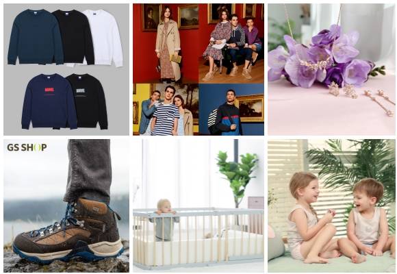 (왼쪽부터 시계방향) FRJ·마블 스튜디오 콜라보 맨투맨 티셔츠 2종, 유니클로 JW 앤더슨 콜라보레이션 출시, 이랜드 클루 멸종 위기 꽃 시리즈, 릴헤븐 수피마 팬티 2종, 세이지폴 애니핏 원목 베이비룸 안전문·컴포트 유아소파, GS샵 컬럼비아 슈즈 최초 론칭. ⓒ 각 사