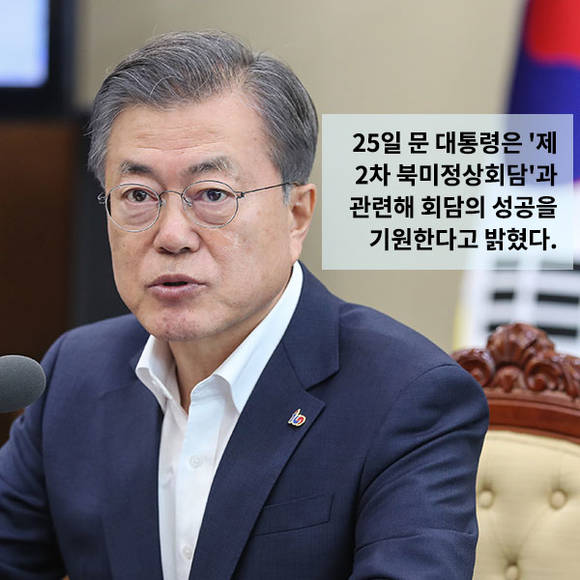[프라임경제] 25일 문재인 대통령은 '제2차 북미정상회담'과 관련해 회담의 성공을 기원한다고 밝혔다.