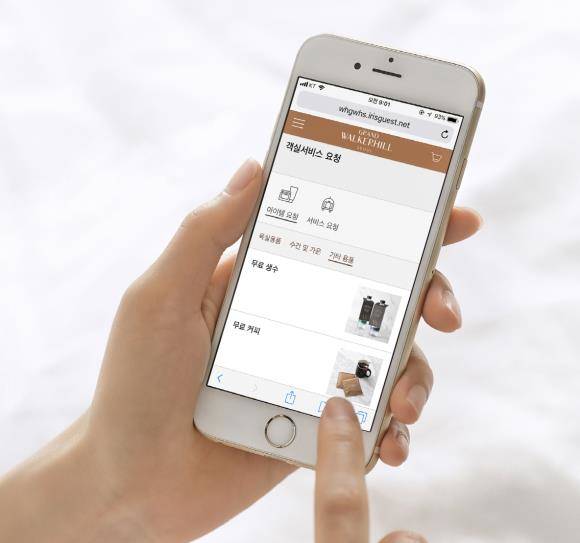 그랜드 워커힐 서울의 모바일 컨시어지 서비스는 호텔 객실뿐 아니라 외부에서도 사용이 가능해 외출 시 돌아오는 시간에 맞춰 서비스를 요청할 수 있다.