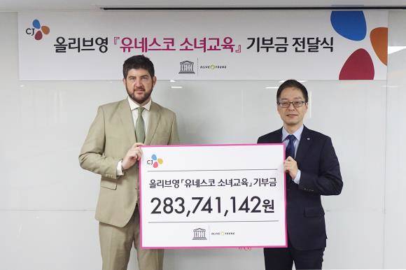 올리브영은 지난 한 해 동안 조성한 기금 약 2억8000만원을 유네스코 소녀교육에 전달했다고 11일 밝혔다.