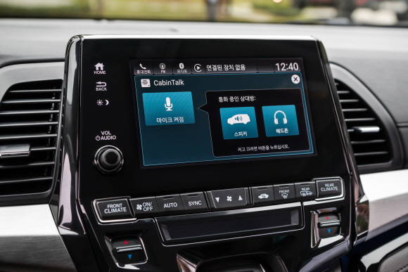 1열 승객의 목소리를 2, 3열의 스피커 및 헤드폰으로 들려주는 캐빈토크. ⓒ 혼다코리아