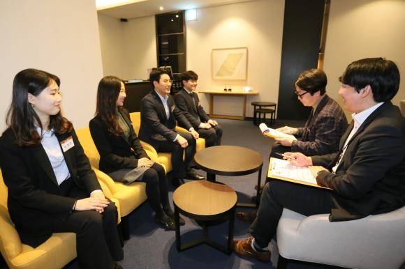 지난 2018년 동계 인턴사원 채용 실무 면접과정은 이색적이고 캐주얼한 분위기를 연출하기 위해 면세점 고객 VIP룸에서 진행했다. ⓒ 한화갤러리아