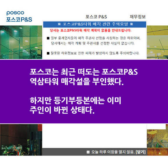 [프라임경제] 지난해 10월 추혜선 정의당 의원은 국감에서 포스코 사옥 매각 관련해 의혹을 제기한 바 있다. 취재 결과, 의혹이 사실일 수도 있다.