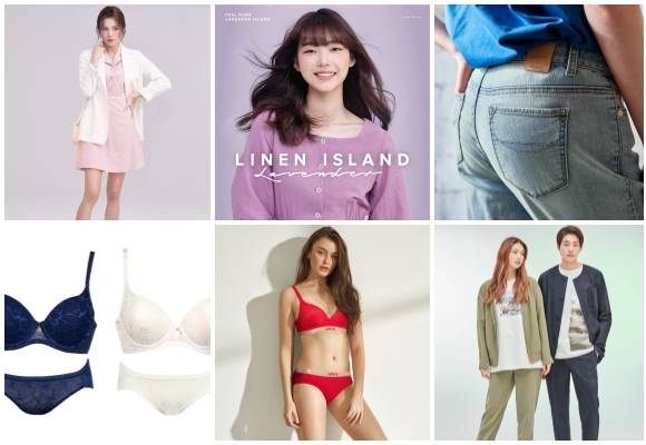 (왼쪽부터 시계방향) 미쏘 봄철 추천 트렌드룩 3종, 스파오 린넨 상품 선봬, FRJ 아이스카페 데님 18종,앤듀 2019년 아우터 제품 공개, 좋은사람들 리바이스 바디웨어 GS홈쇼핑 론칭, BYC 플로럴 란제리 세트. ⓒ 각 사