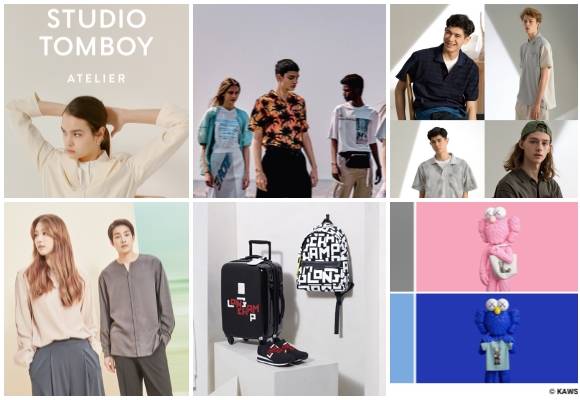 (왼쪽부터 시계방향) 신세계톰보이 아틀리에 라인, 시스템·시스템 옴므 여름 컬렉션, 유니클로 엔지니어드 가먼츠 폴로셔츠·카우스 콜라보레이션, 롯데백화점 롱샴 LGP 컬렉션, 앤듀 셋업 썸머 쿨 셔츠&팬츠. ⓒ 각 사