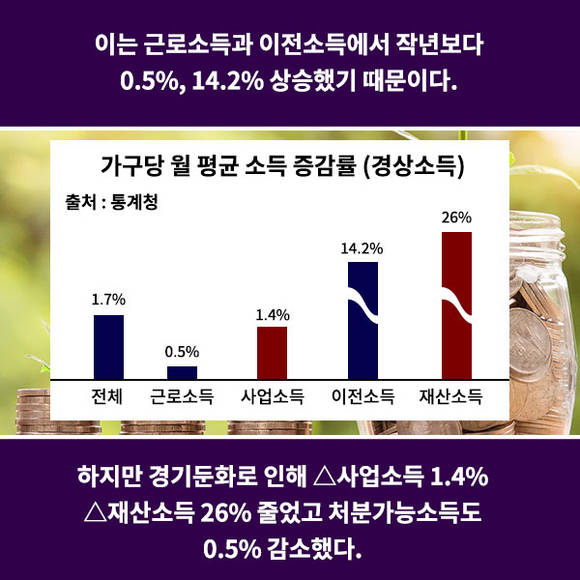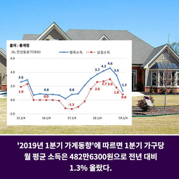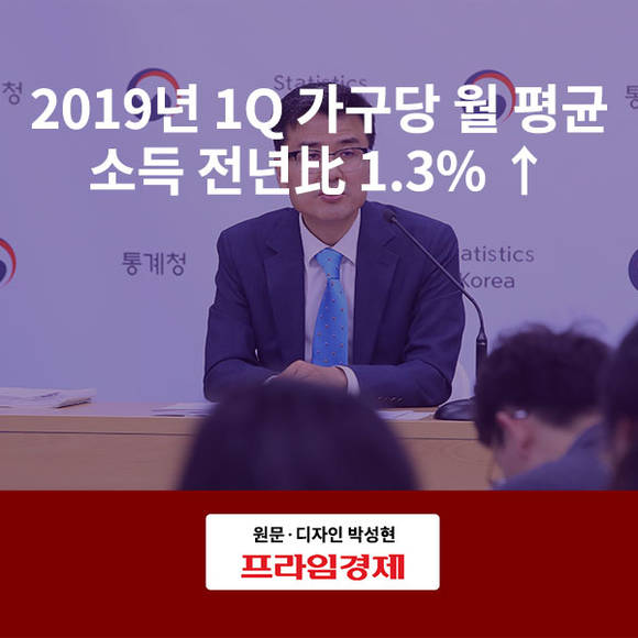 [프라임경제] 통계청이 발표한 '2019년 1분기 가계동향'에 따르면 1분기 가구당 월 평균 소득은 작년보다 1.3% 올랐다.