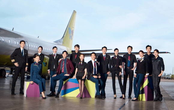 진에어 전 직군(객실 및 운항승무원, 공항운송, 항공정비) 유니폼. ⓒ 진에어