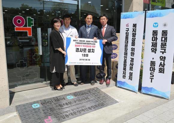 동아에스티는 올해 서울시 동대문구 답십리동 복지약국에 걷기 불편한 사람들을 위한 이동 경사로 설치식을 가졌어요. ⓒ 동아에스티