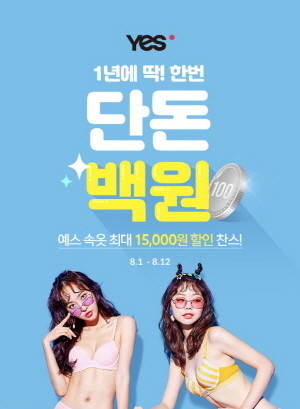 [프라임경제] 좋은사람들(033340·대표 이종현)의 코디네이션 언더웨어 예스가 브랜드 론칭 15주년을 맞아 1일부터 이커머스 기업 위메프와 함께 '100원 특가딜' 프로모션을 실시한다고 밝혔다.
