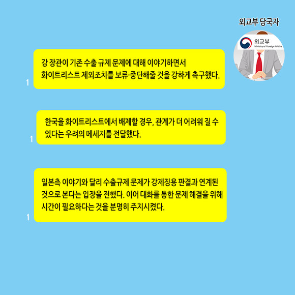 "화이트리스트 한국 배제시 관계 더 힘들어"…우려 전달