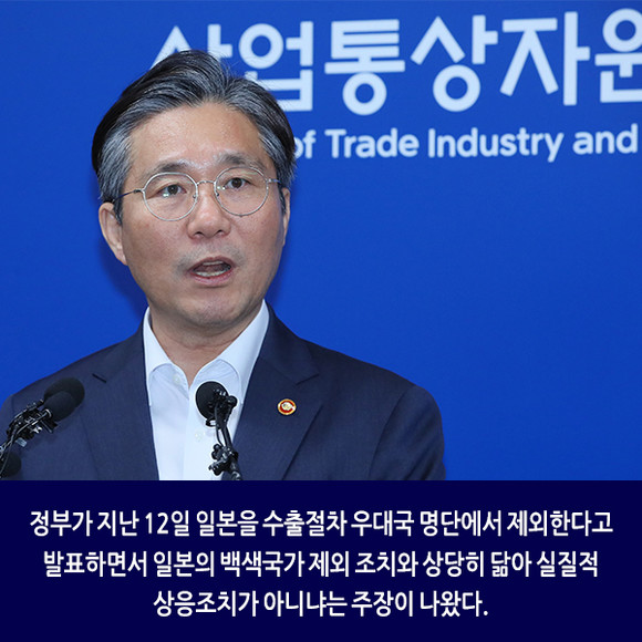 [프라임경제] 정부가 지난 12일 일본을 수출절차 우대국 명단에서 제외한다고 발표했지만 상응조치가 아니라고 부인했다. 이는 세계무역기구(WTO)소송과 국제사회 여론을 인식했기 때문이라는 분석이다.