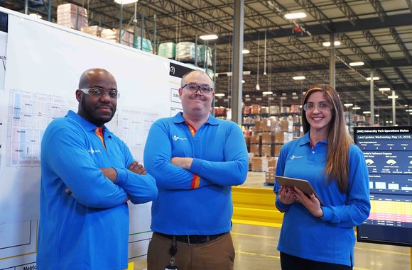 CJ대한통운의 미국 뉴패밀리사인 DSC로지스틱스 직원들이 물류센터 안에서 포즈를 취하고 있다. ⓒ CJ대한통운