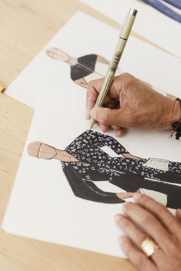 패션 디자이너 마리아 코르네호가 현대차 업사이클링 의상 디자인을 스케치하는 모습. ⓒ 현대자동차