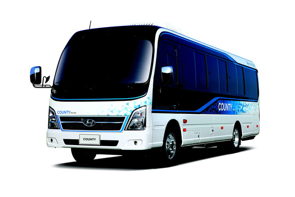 2017년 최초의 전기버스 일렉시티, 2018년 평창 동계올림픽 시범운행에 성공한 수소전기버스 등을 선보인 현대차는 카운티 EV를 최초 공개했다. 기존 디젤 모델보다 차량 길이가 60㎝ 늘어난 초장축 카운티 EV는 128㎾h 대용량 배터리가 탑재돼 1충전 주행거리 200㎞ 이상, 72분 만에 완충이 가능하다.