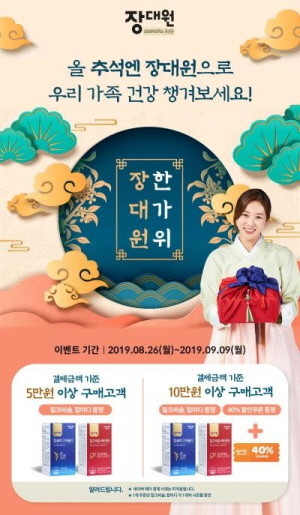 정현석 대원제약 컨슈머헬스케어부 부장은 "추석을 맞아 명절 음식 등으로 과식하기 쉬운 연휴 기간 동안 장대원이 가족들의 건강 지킴이가 되고자 마련한 이벤트"라며 "신제품들이 가족들의 건강 증진은 물론, 마음을 나누는 명절 선물로도 좋은 선택이 될 것"이라고 말했다.