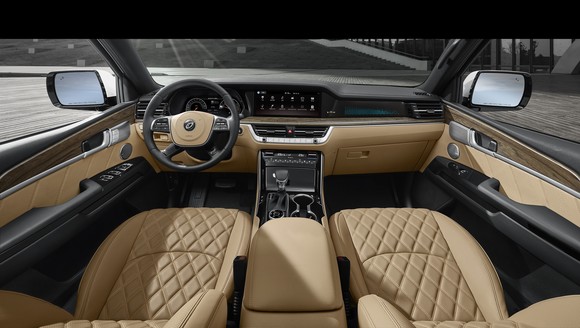 센터페시아에서 도어까지 길게 이어지는 고급스러운 오크 우드 그레인 가니쉬를 비롯해 △최고급 나파가죽 퀼팅 시트 △간결하고 모던한 버튼을 적용해 세련된 센터페시아 △12.3인치 대형 클러스터와 내비게이션 △입체 패턴 무드램프 등이 적용된 인테리어가 특징이다.