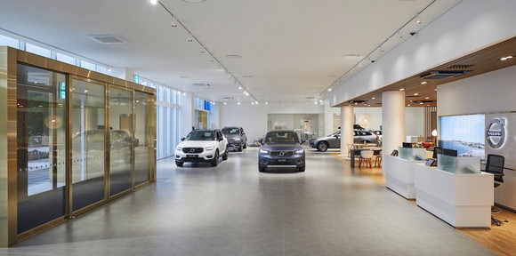 특히 건물 외관은 북유럽 감성의 '볼보 리테일 익스피어리언스(Volvo Retail Experience)' 콘셉트를 새롭게 적용해 야간에는 스웨덴의 오로라를 형상화한 조명 아트를 선보인다. 실내는 북유럽 감성이 묻어나는 원목소재 인테리어와 조명으로 볼보만의 차별화된 디자인과 편안하고 안락한 분위기를 연출했다.