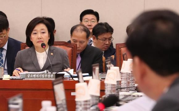 편의점 점포수가 급증하면서 일매출 110만원 이하의 저매출 점포가 증가하고 있는 것으로 나타났다. 사진은 8일 오전 국회에서 열린 산자위 국정감사에서 박영선 장관이 의원 질의를 듣고 있다. ⓒ 연합뉴스
