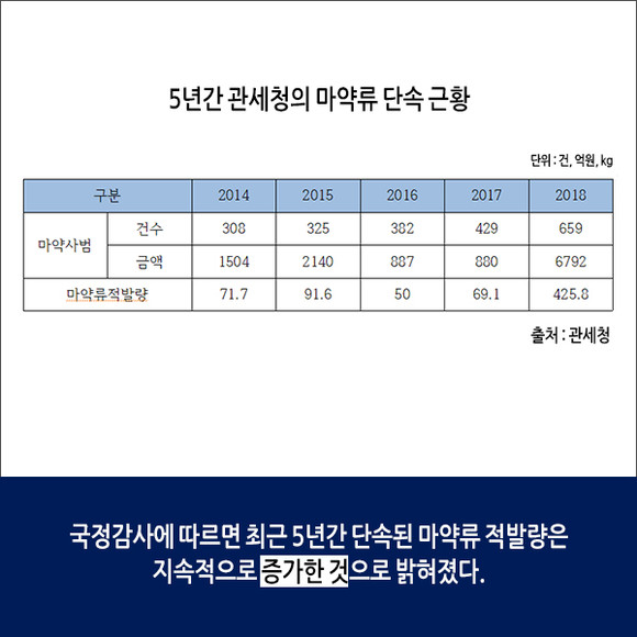 [카드뉴스] 관세청, 올해 마약류 적발량 425.8kg