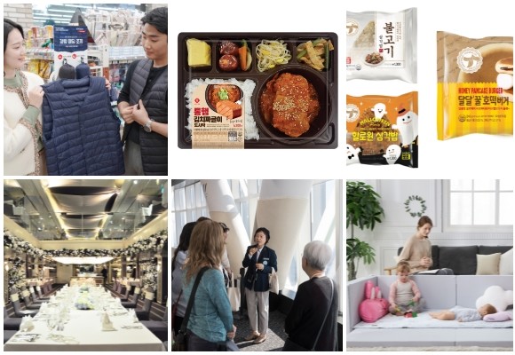 (왼쪽부터 시계방향) 세븐일레븐 경량패딩조끼·통햄김치짜글이 도시락, 이마트24 삼각밥 2종·달달꿀호떡버거, 밀로앤개비 멀티 범퍼침대, 서울스카이 스토리텔러 프로그램, 이랜드크루즈 얼리버드 프로모션. ⓒ 각 사