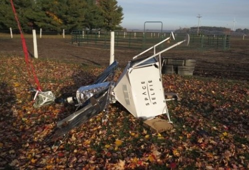 미국 미시간주 메릴에 사는 낸시 웰키는 26일(현지시각) 오전 자신의 앞마당에 스페이스 셀피가 떨어졌다고 소개했다. 소음을 듣고 나가 보니 나무에 낙하산이 걸려 있었고, 스페이스 셀피라고 적힌 물체가 낙하산에 연결된 채 바닥에 떨어져 있었다는 것이다.