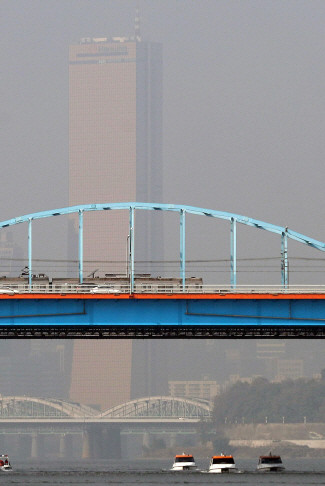 한강 다리를 통과 중인 지하철과 한강 수상택시가 함께 찍힌 모습. 육상 대중교통에 막대한 투자를 해 서울 시민의 교통 편의 증진을 꾀하고 있으나 수상교통 정책에는 적극적 투자 판단이 이뤄지지 않고 있다. ⓒ 연합뉴스