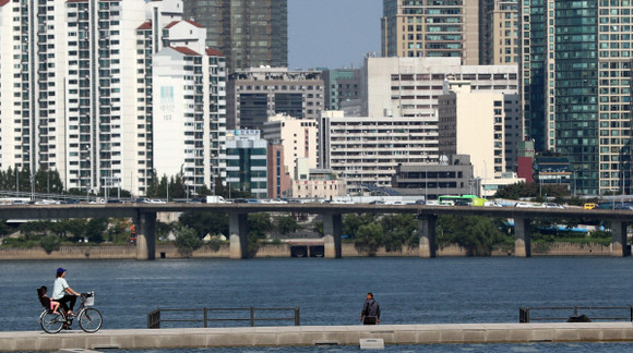 한강을 따라 자전거를 타는 시민의 모습. ⓒ 연합뉴스
