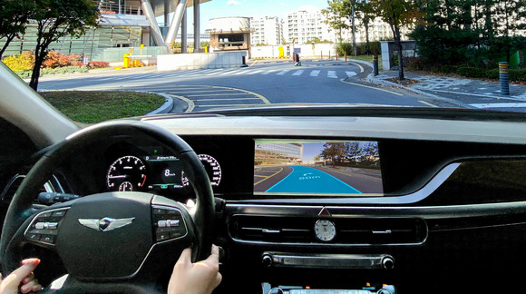 또 첨단운전자보조시스템(ADAS)의 센서들을 통해 수집된 차선, 전방차량 및 보행자와의 거리 정보를 활용해 차로를 이탈하거나 충돌위험이 판단되면 경고음과 함께 AR 내비게이션을 통해 위험상황도 알려 준다.