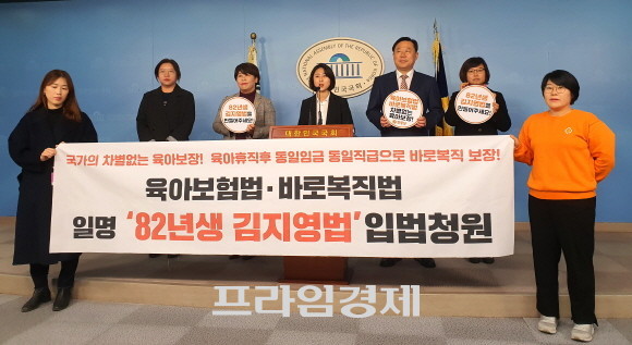 장지화 민중당 공동대표는 "출산과 육아와 관련해 여성들의 어려움을 해소하기 위해 오랫동안 고심했다"면서 "직장을 다니던 여성이 출산과 육아휴직 후 자신의 △동일 직급 △동일 임금으로 복직할 수 있어야 한다"고 밝혔다.