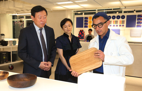 롯데 신동빈 회장은 14일 저녁, 롯데백화점 강남점에서 진행된 더 콘란샵 오프닝 행사에 참석했다. 더 콘란샵을 방문한 신동빈 회장(왼쪽에서 첫번째)이 김성은 롯데백화점 더콘란샵 팀장(왼쪽에서 두번째), 휴 왈라 더 콘란샵 CEO(왼쪽에서 세번째)와 매장을 둘러보고 있다. ⓒ 롯데지주