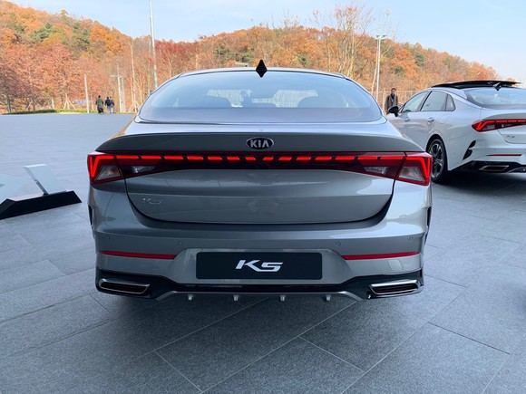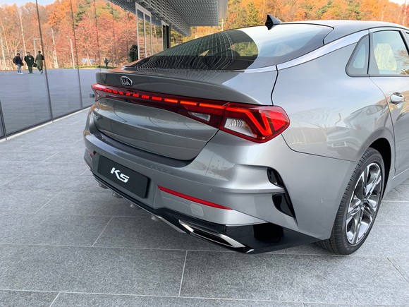 3세대 K5의 후면부 디자인은 전면부와의 연결성을 강조, 독창적인 디자인 요소를 통해 고급스럽고 안정감 있는 모습을 갖췄다. = 노병우 기자
