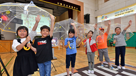 현대모비스는 어린이들의 교통사고를 예방하고자 전국 초등학교 학생들에게 투명우산을 배포하고 있다. ⓒ 현대모비스