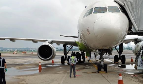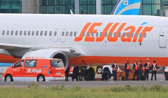 2017년 7월 제주발 김해행 제주항공 7C510편이 이륙 과정에서 타이어가 파손돼 다른 항공편의 운항에 차질이 빚어졌다. ⓒ 연합뉴스