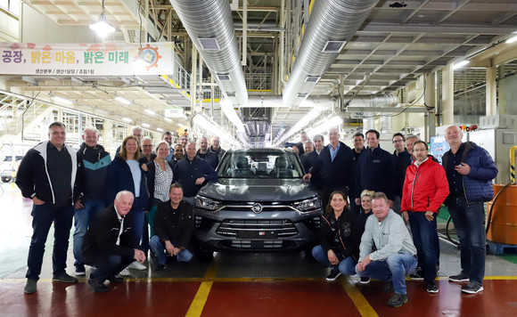 쌍용차는 코란도의 해외 현지마케팅 및 브랜드 인지도 전략 강화, 해외네트워크와의 지속적인 소통과 아이디어 공유 등 다방면으로 힘쓰고 있다. 사진은 평택공장을 방문한 중부 유럽 대리점 및 딜러 관계자들이 생산된 코란도 옆에서 단체촬영을 하고 있다. ⓒ 쌍용자동차