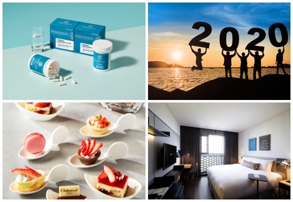 (왼쪽부터 시계방향) GC녹십자웰빙 프로바이오틱스 제품 3종, 롯데리조트 특급 이벤트, 글래드 호텔앤리조트 공홈족 패키지, 오크우드 딸기 Sweet City. ⓒ 각 사