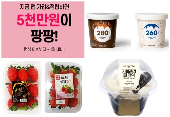 (왼쪽부터 시계방향) HDC아이파크몰 통합 멤버십 어플리케이션, 세븐일레븐 라라스윗 아이스크림·커피젤리컵케익, 이마트24 금실딸기. ⓒ 각 사