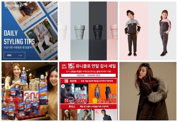(왼쪽부터 시계방향) LF 아우 정식 론칭, 라움보야지 스토조 텀블러, 컬리수 애슬레저 아이템, 버커루 프리미엄 야상 다운점퍼, 유니클로 15주년 연말 감사 세일, 롯데백화점 강소백 청춘 2020 에디션. ⓒ 각 사