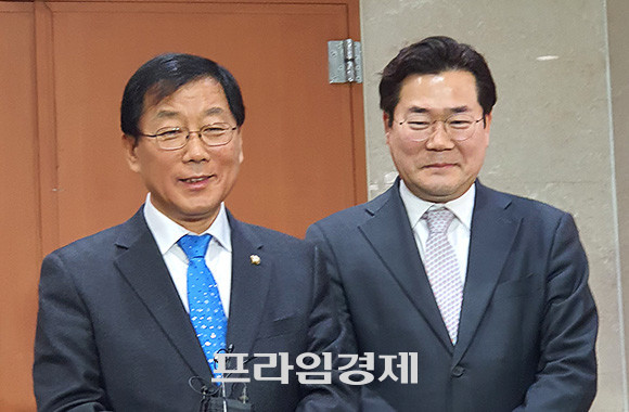 윤후덕 더불어민주당 의원(왼쪽)은 29일 기자회견을 마친 후 기자들 앞에서 소감을 말했다. = 박성현 기자