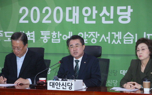 최 대표는 이날 국회 의원회관서 열린 최고위원회·국회의원 연석회의에서 "대안신당은 3당 통합선언에 나설 것"이라면서 "총선 두 달 전인 다음 주까지 3당 통합선언이 이뤄지길 바란다"고 밝혔다.