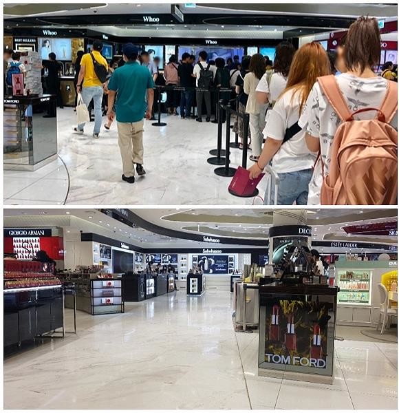 가장 북적이는 면세점 또한 예전에 비해 중국인 고객이 확연히 줄어든 모습을 확인할 수 있었다. 길게 줄을 서 제품을 구입해야했던 인기 화장품 매장 직원들은 1~2명의 중국인 고객을 응대하는 것 외에는 텅 빈 매장에서 물품을 정리하거나 휴대폰을 보는 모습도 보였다.