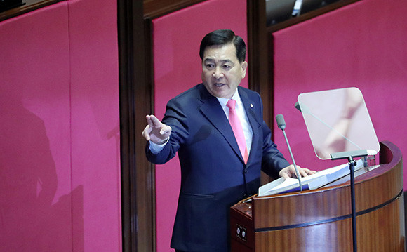 또한 심 원내대표는 민생 재앙에 대해 "소득 주도 성장이라는 잘못된 아집으로 경제를 몰락시키고 민생을 재앙에 빠트렸다"면서 "(제정 투입에도 불구하고) 경제성장률은 고작 2%에 불과하며 수출은 14개월 연속 마이너스"라고 비꼬았다.
