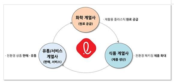 롯데는 플라스틱 소재인 페트(PET)와 관련해 '원료 생산-패키징 제작-제품 생산-유통 및 판매’의 밸류체인 전 단계가 그룹 내에 존재한다는 점에 착안해, 롯데그룹만의 독보적인 플라스틱 선순환 체계를 구축한다는 계획을 세웠다.