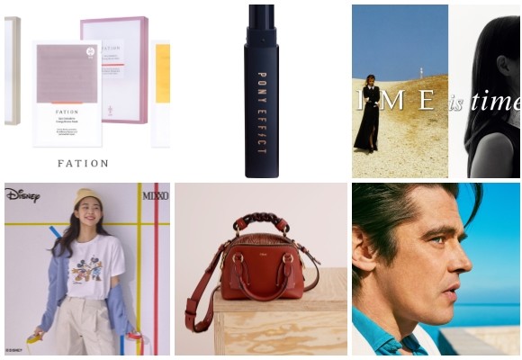 (왼쪽부터 시계방향) 파티온 이지 솔루덤 마스크 라인, 포니이펙트 에나멜 립 라커, 한섬 타임 이즈 타임리스, 맨온더분 캘리포니아 주제 봄여름 컬렉션, 끌로에 다리아 백, 미쏘·미키마우스 협업 상품 출시. ⓒ 각 사