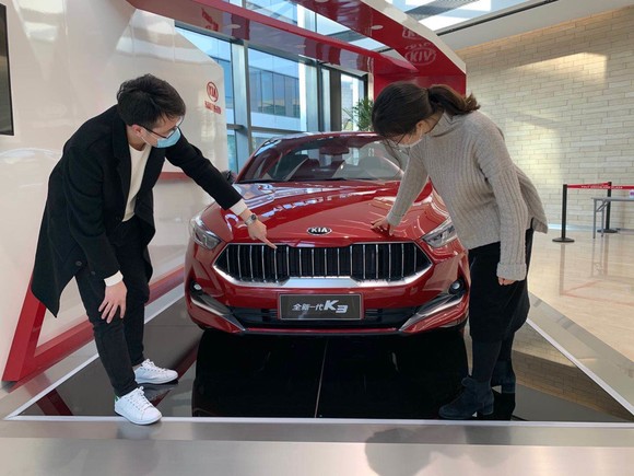 동풍열달기아 직원이 고객에게 신형 K3에 대해 설명하고 있는 모습. ⓒ 기아자동차