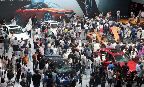 지난 2018 부산국제모터쇼 현장이 방문한 관람객들로 북적거리고 있는 모습. ⓒ 연합뉴스