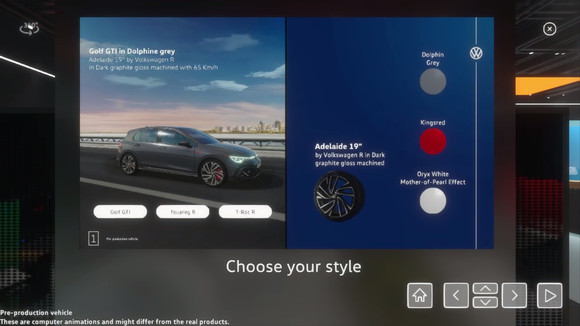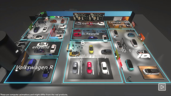폭스바겐의 모든 차량들과 부스는 인터랙티브 디지털 방식으로 구현돼 방문객은 실제 모터쇼 현장에 방문한 듯 생생한 경험을 해볼 수 있다. 또 360° 체험을 통해 전시된 차량들을 모든 측면에서 살펴 볼 수 있으며, 차량의 색상과 휠 구성을 직접 변경해 보는 등 적극적인 참여도 가능하다.