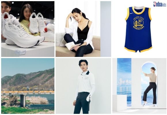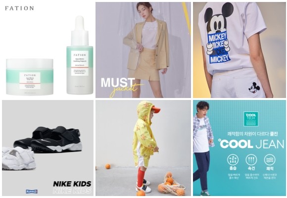 (왼쪽부터 시계방향) 파티온 아쿠아 바이옴, 미쏘 머스트 재킷, 보브 V 미키 한정판 컬렉션, 스파오 쿨진, 모이몰른 토들러 라인 셋업 제품, 플레이키즈프로 나이키 에어리프트 키즈 라인. ⓒ 각 사